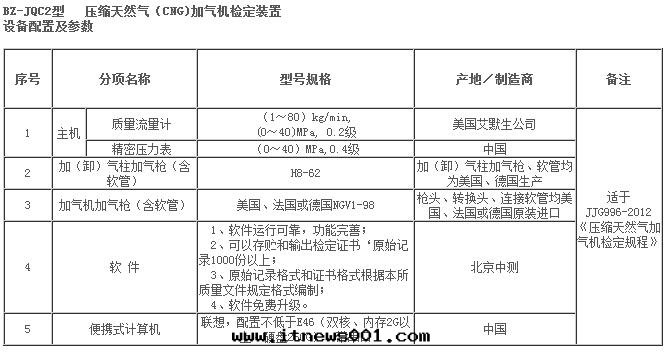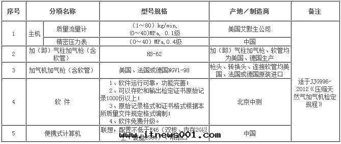 壓缩天(tiān)然气(qì)加气(qì)機(jī)檢定(dìng)裝(zhuāng)置主(zhǔ)要(yào)技術(shù)參數